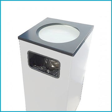 В цветных моделях, верхняя крышка-черного цвета. Внутри бака находится рамка-держатель для пакета. Вверху, под крышкой находится емкость для сбора сигарет.